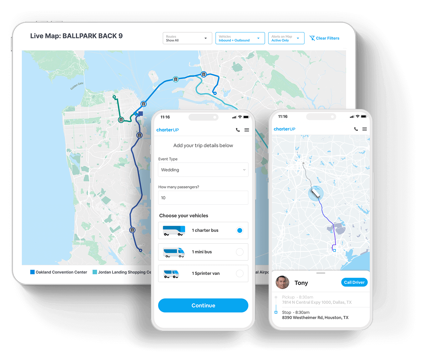 Powered by cutting-edge technology and an unmatched nationwide bus network, CharterUP powers everything from on-demand buses to complex, long-term transportation programs.